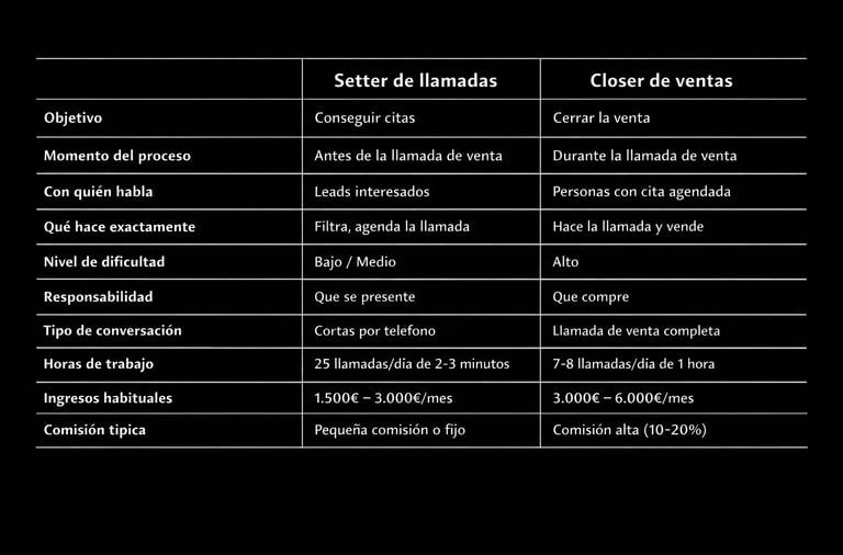 Ser setter de llamadas solo requiere unas 2h / 3h al día, con conversaciones cortas por teléfono y una dificultad baja, por lo que es una de las formas más fáciles de empezar en ventas.